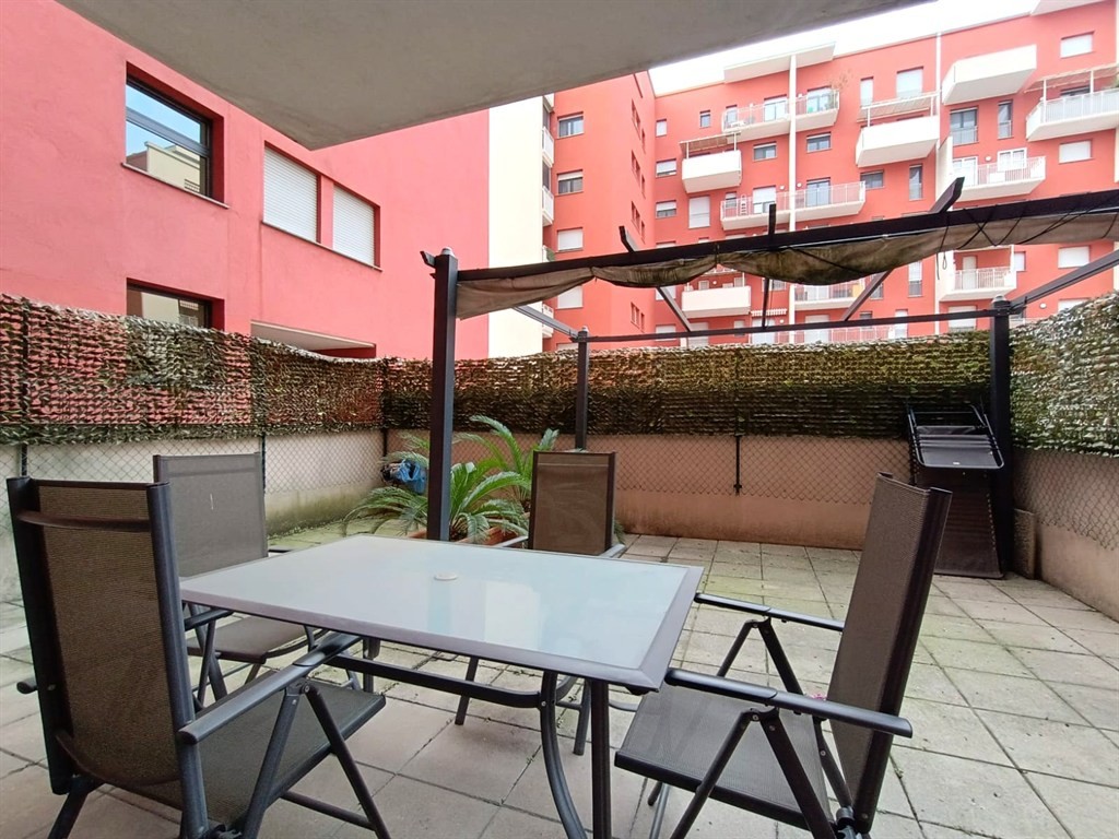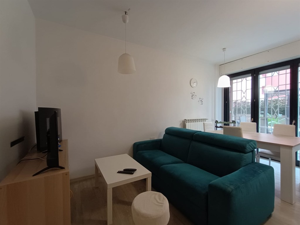 Inserito in uno stabile recente del 2006, silenzioso e ben abitato, proponiamo in locazione appartamento trilocale di circa 86 mq in ottime condizioni completamente arredato con arredi moderni e funzionali. Il disimpegno di ingresso si apre sull’area living che ospita il soggiorno con salotto, la zona pranzo e la parete attrezzata della cucina completa di tutti gli elettrodomestici (lavastoviglie compresa). Una tripla portafinestra dà accesso al terrazzo di circa 25 mq ben attrezzato con tenda da sole. Il corridoio conduce al disimpegno della zona notte, rendendo quest’ultima nettamente isolata dal resto della casa. La camera da letto matrimoniale è particolarmente spaziosa e gode di un balcone che corre lungo tutto il lato est della casa. La cameretta può essere utilizzata per gli ospiti, come studio personale o come seconda camera da letto. Il terrazzo è accessibile anche da questa stanza. Tra le due camere vi è il bagno finestrato, dotato di box doccia doppio e lavatrice. Completa la proposta una comoda cantina.