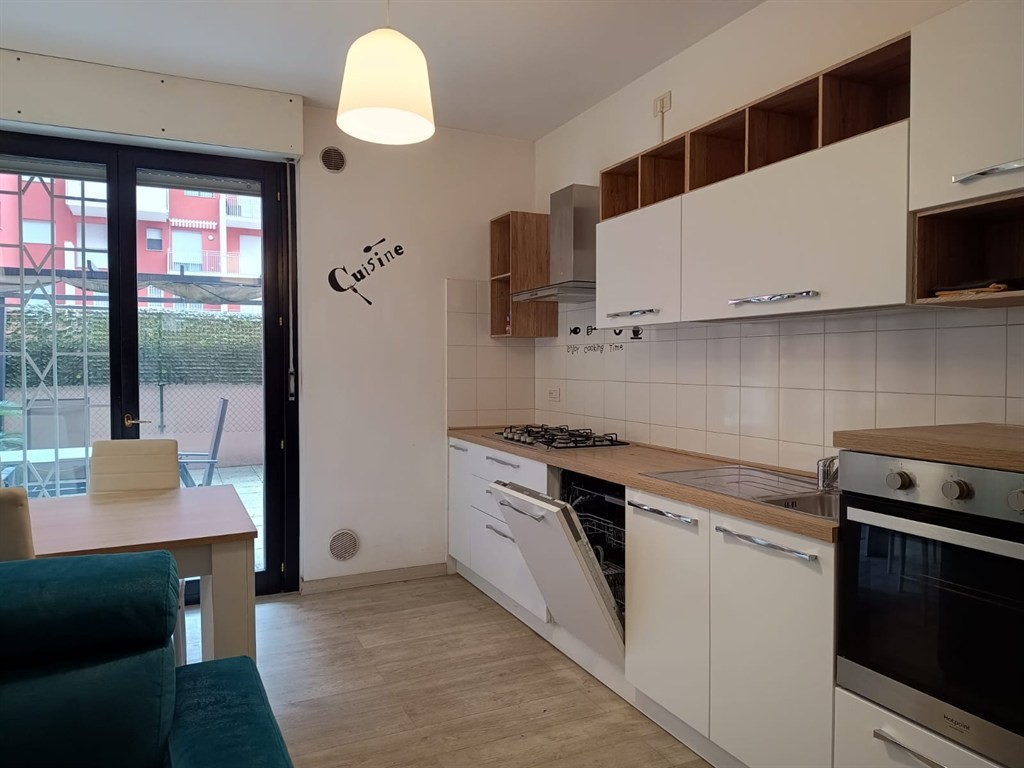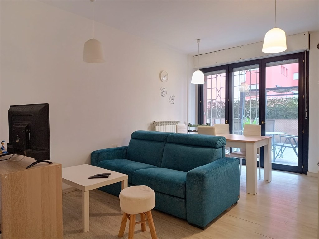 Inserito in uno stabile recente del 2006, silenzioso e ben abitato, proponiamo in locazione appartamento trilocale di circa 86 mq in ottime condizioni completamente arredato con arredi moderni e funzionali. Il disimpegno di ingresso si apre sull’area living che ospita il soggiorno con salotto, la zona pranzo e la parete attrezzata della cucina completa di tutti gli elettrodomestici (lavastoviglie compresa). Una tripla portafinestra dà accesso al terrazzo di circa 25 mq ben attrezzato con tenda da sole. Il corridoio conduce al disimpegno della zona notte, rendendo quest’ultima nettamente isolata dal resto della casa. La camera da letto matrimoniale è particolarmente spaziosa e gode di un balcone che corre lungo tutto il lato est della casa. La cameretta può essere utilizzata per gli ospiti, come studio personale o come seconda camera da letto. Il terrazzo è accessibile anche da questa stanza. Tra le due camere vi è il bagno finestrato, dotato di box doccia doppio e lavatrice. Completa la proposta una comoda cantina.